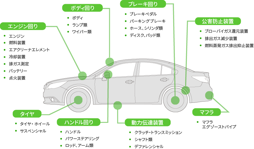 ※掲載項目は主な点検項目です。車種によっては該当しない項目もあります。
