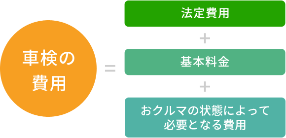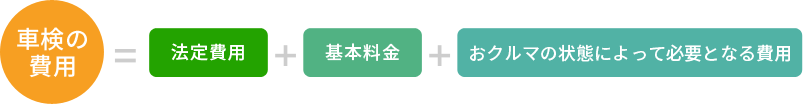 車検の料金は、法定費用と基本料金に加え、おクルマの状態によって必要となる費用もかかります。