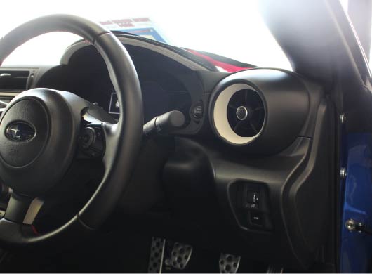 インパネ廻りやメーターバイザー、ドアトリム、コンソールなどを7色からお選びいただけ、さらにステッチを6色からお選びいただけますので、自分好みの内装にしてみてはいかがでしょうか。